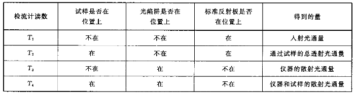 調節霧度計零點旋鈕,使積分球在暗色時檢流計的指示為零。當光線無阻擋時,調節儀器檢流計的指示為100,然后按下表操作,讀取T1、T2、T3和T4。